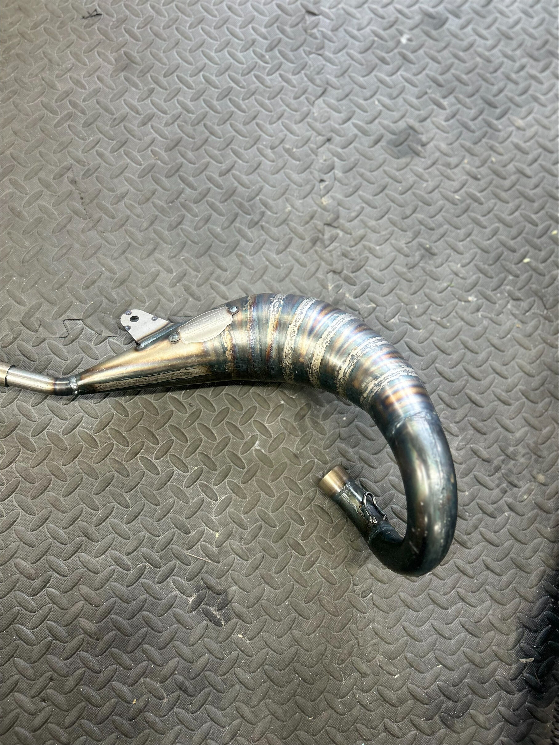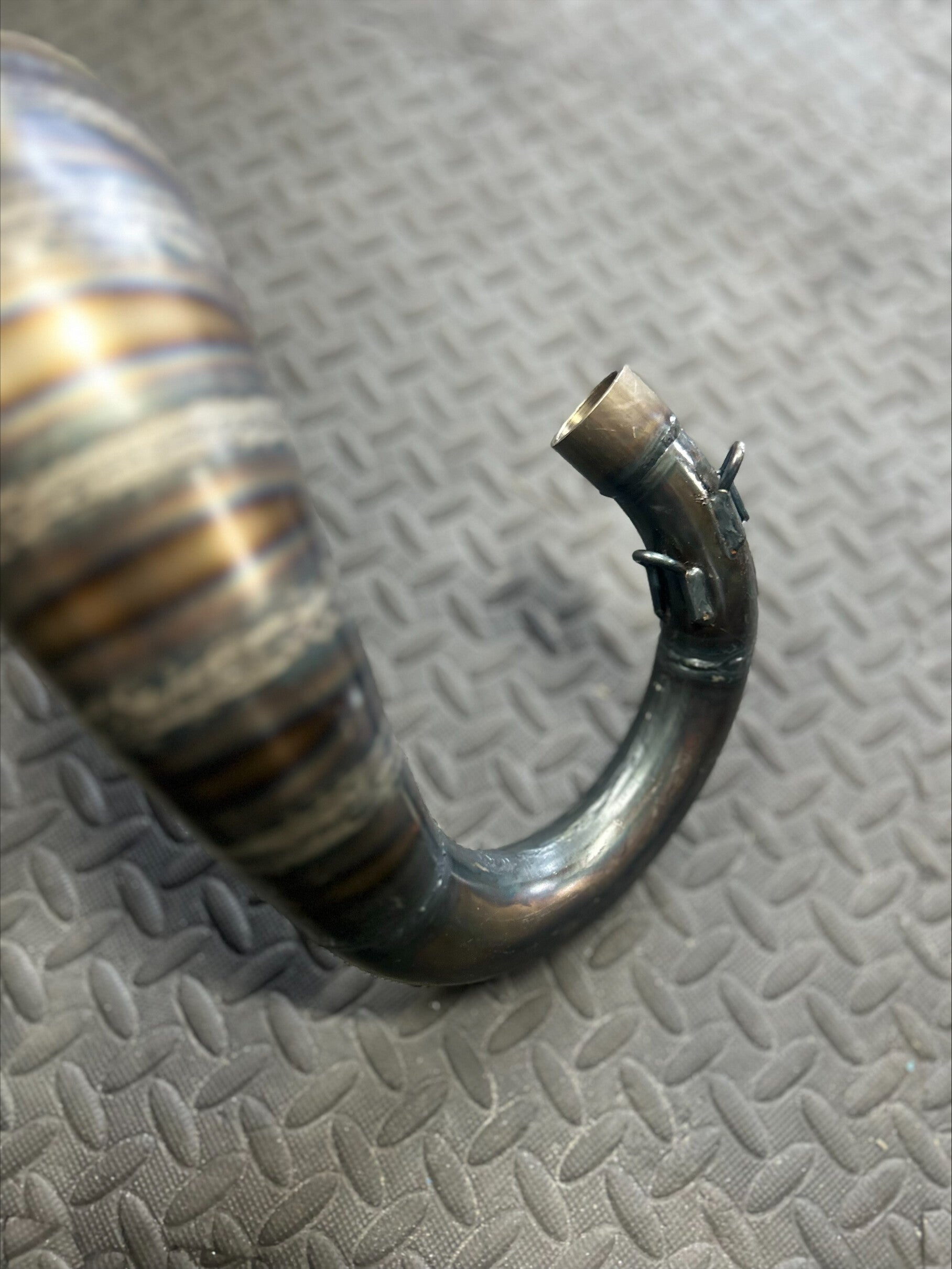 Uitlaatsysteem van SCR Corse Handmade Cross 50/70cc, zijn eersteklas tuning uitlaat voor 50cc brommers met 50cc - 70cc Race cilinders. Deze nieuwe en natuurlijk verbeterde versie is vooral krachtig in het middelhoge en hoge toerental bereik, wat resulteert in een iets hogere topsnelheid. De vermogens snelheid is 7.000 tot 11.500 tpm. helaas is er door vervoer een klein deukje ingekomen zie de foto,